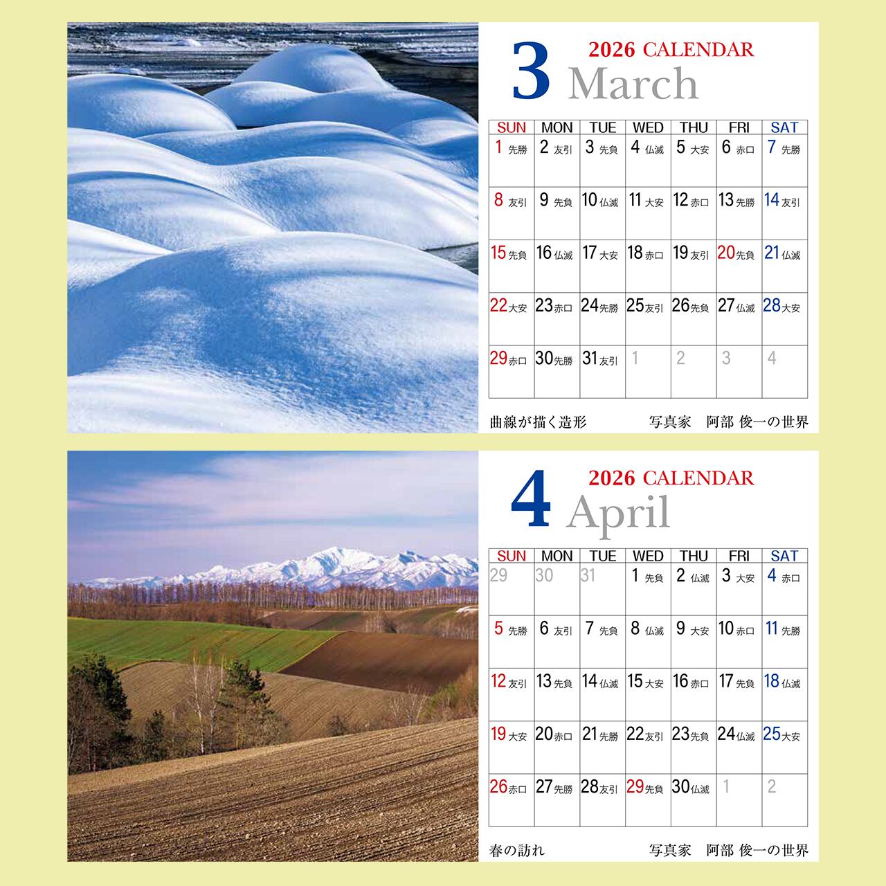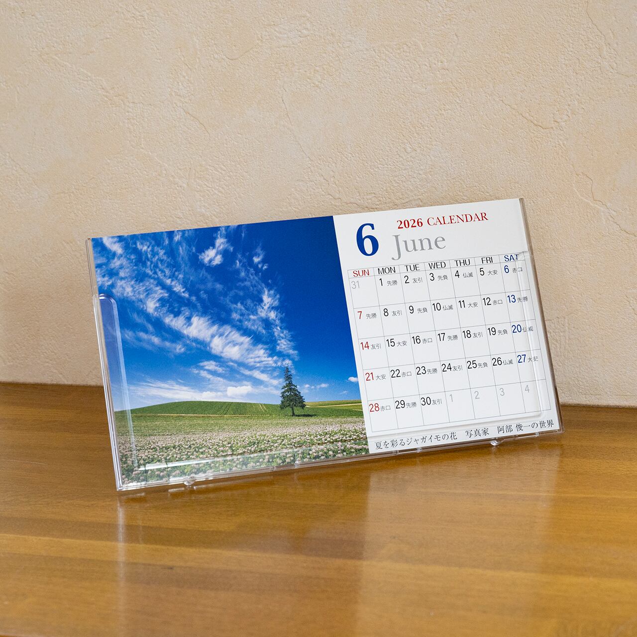 2026年を一年間楽しく彩る卓上カレンダーです。美しい写真が12枚あり、季節の移り変わりや風景を感じることができます。独自のデザインで、壁掛けタイプと異なる特長を持っています。コンパクトなサイズなので、デスクやキッチンカウンターなど、どこにでも置くことができます。